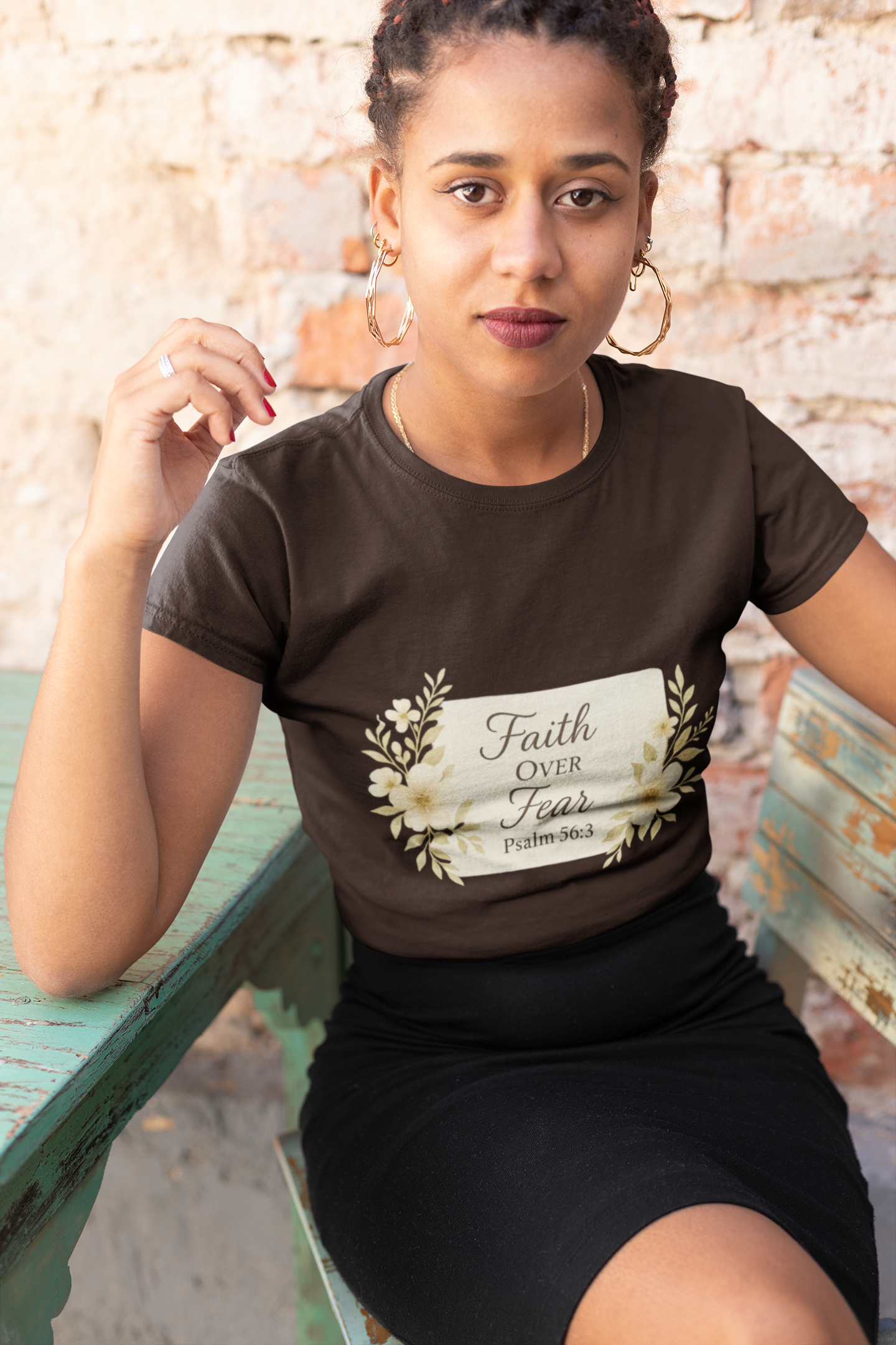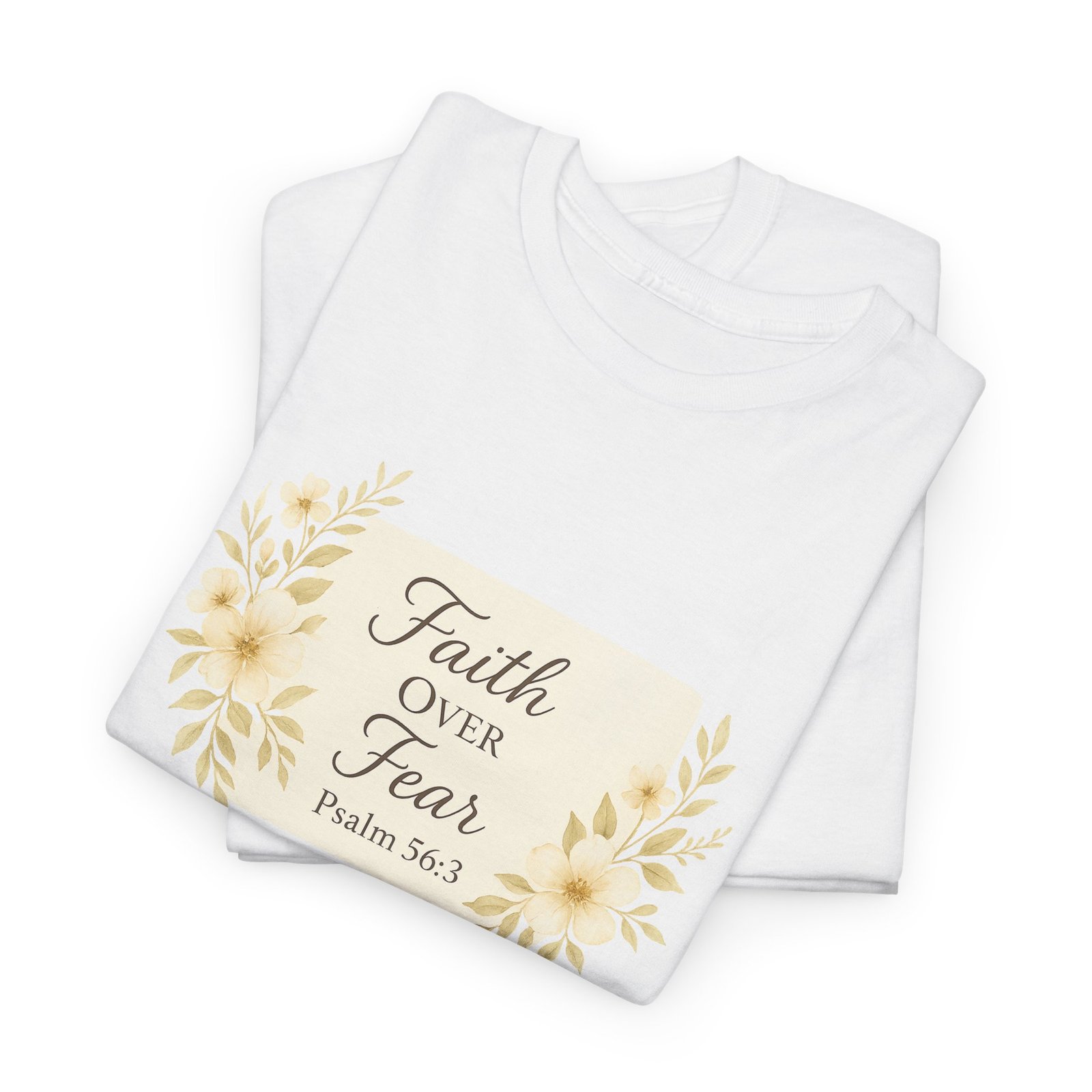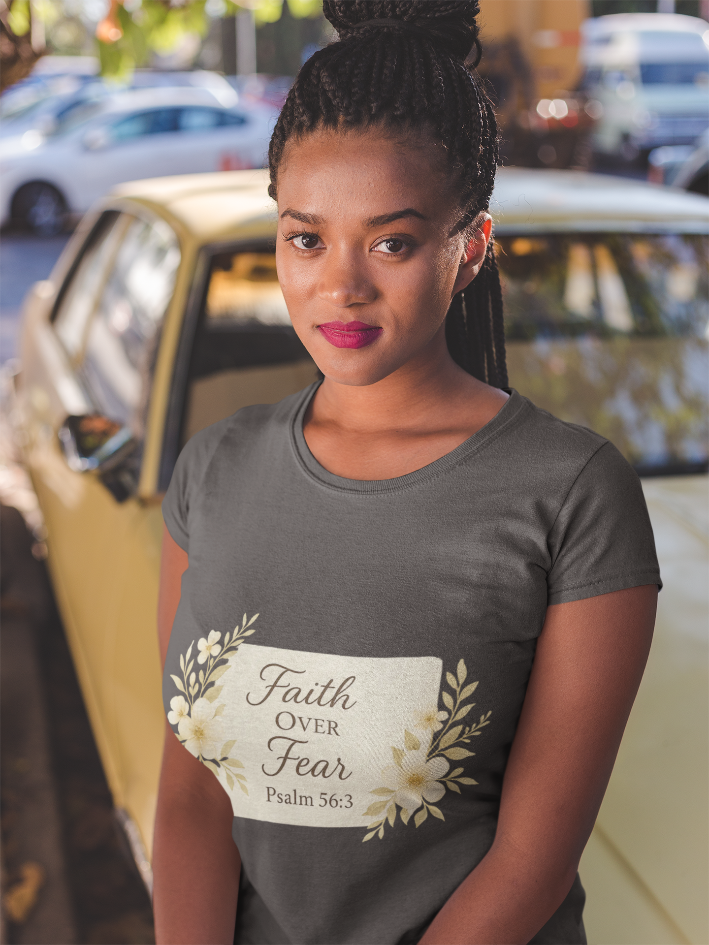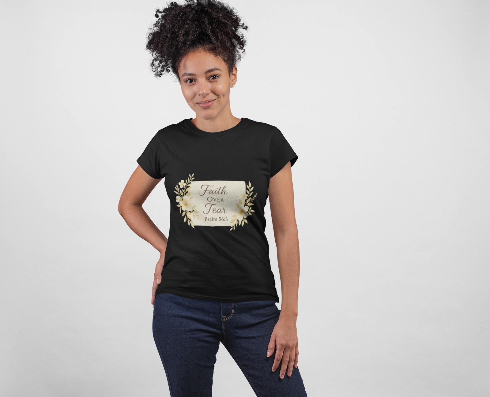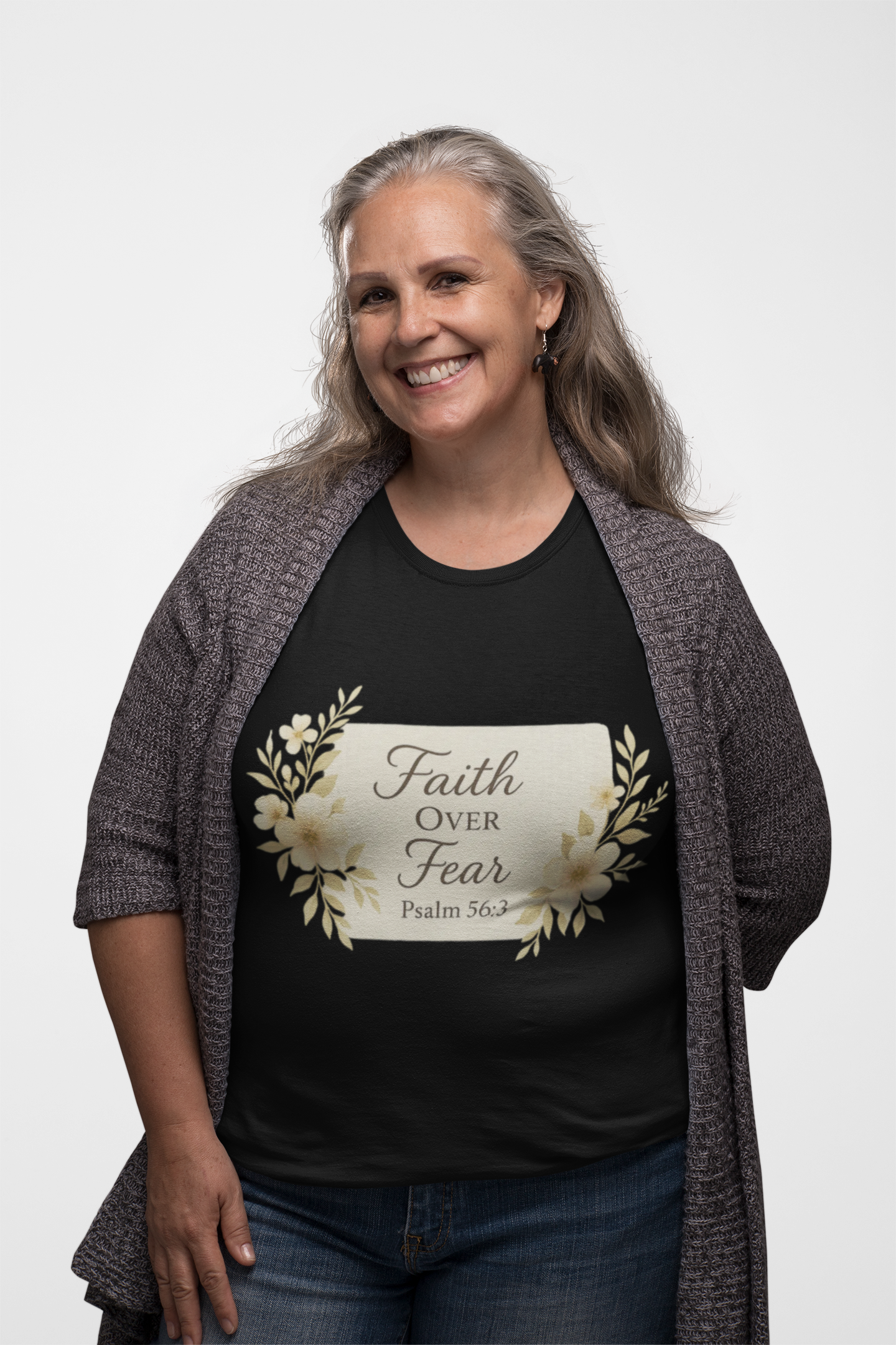 As Christian we know that God has not given us a spirit of fear but of power, love and a sound mind. Let this T-shirt be a reminder to let us remember the Lord is with us, no matter what we fear. Faith without Fear.