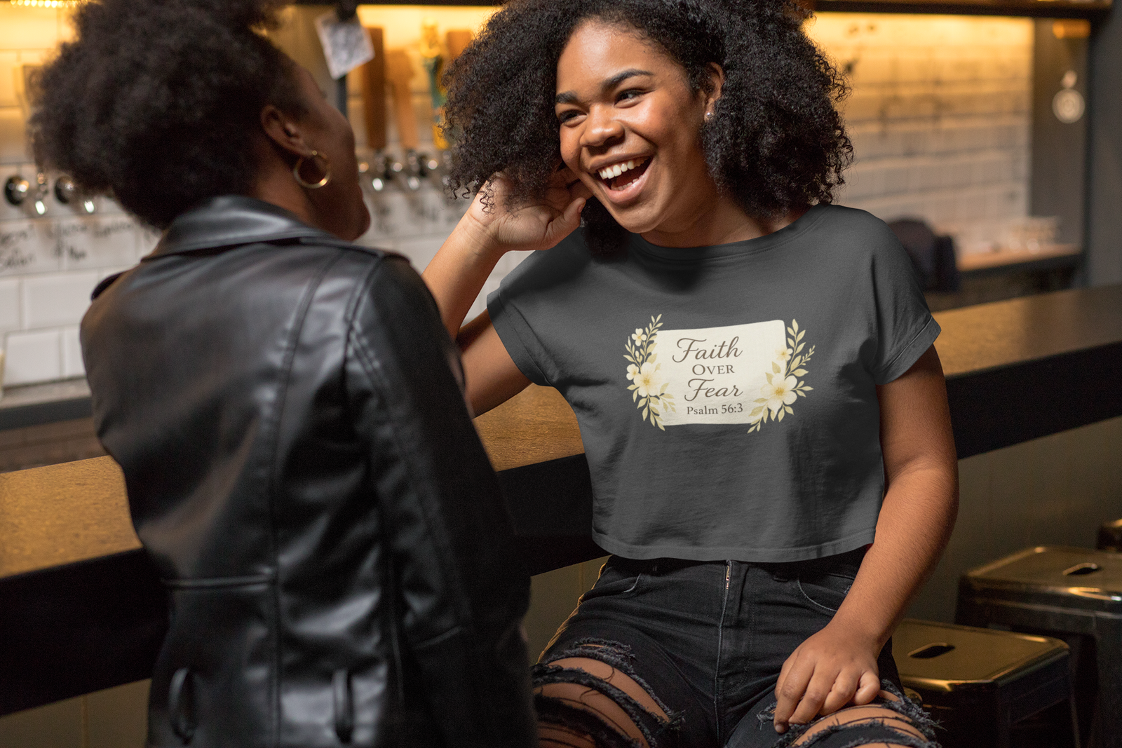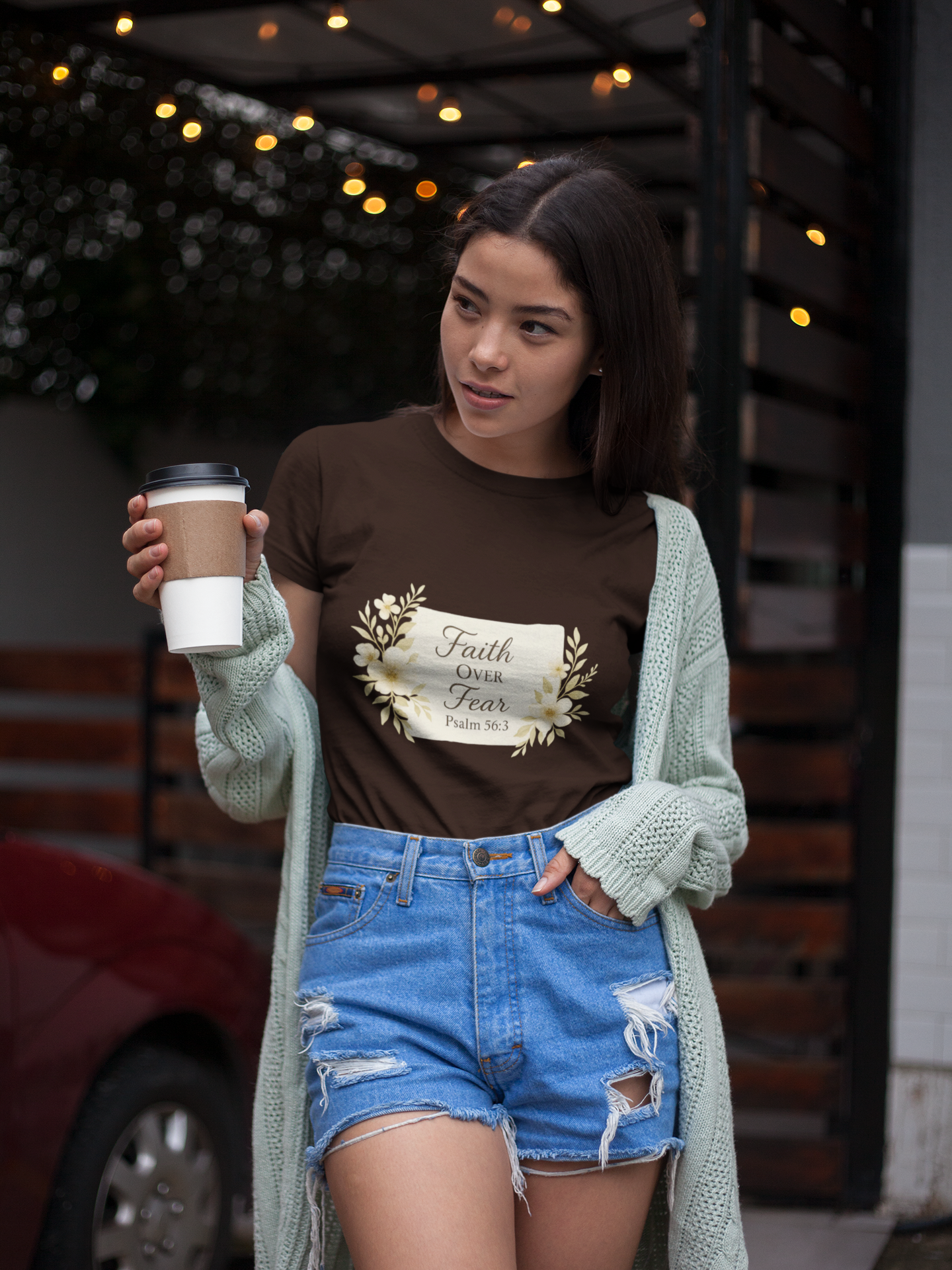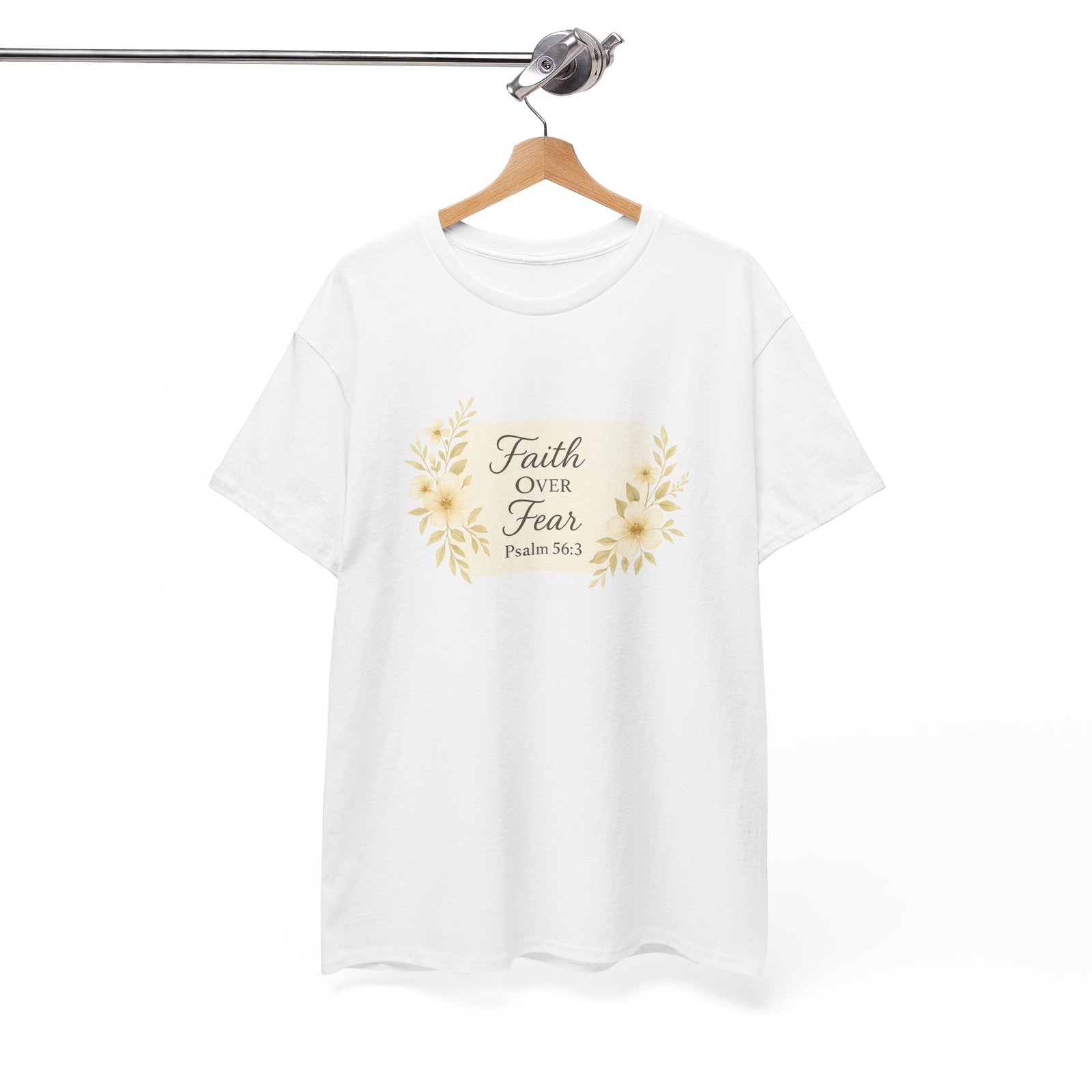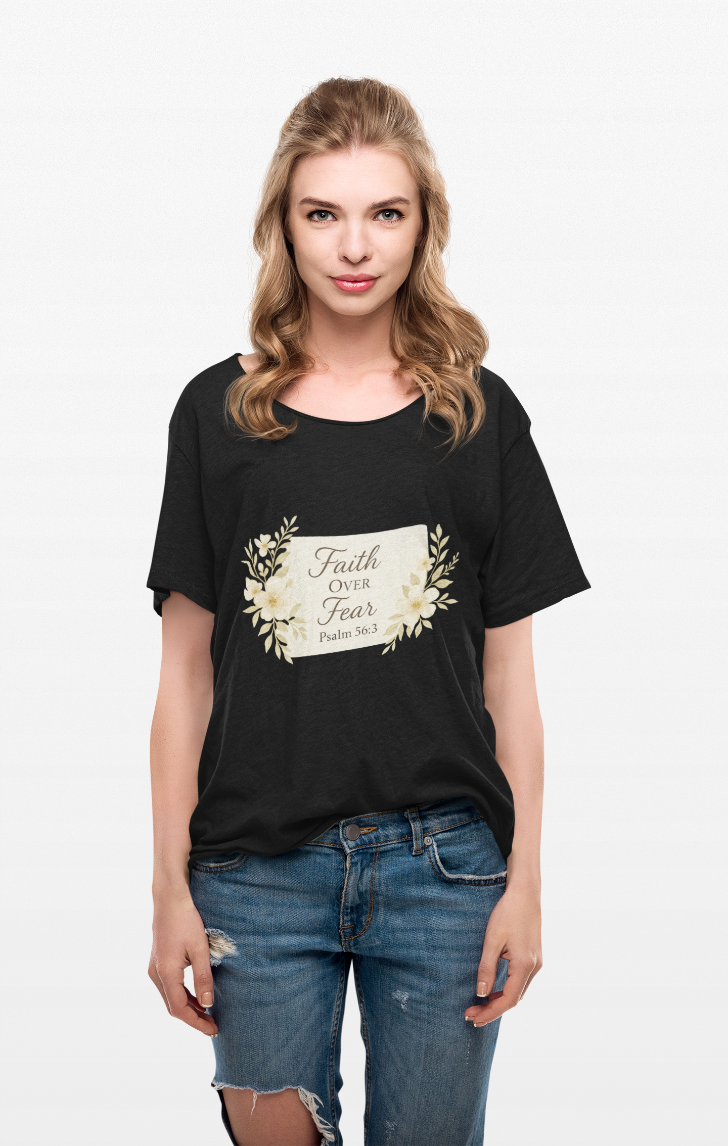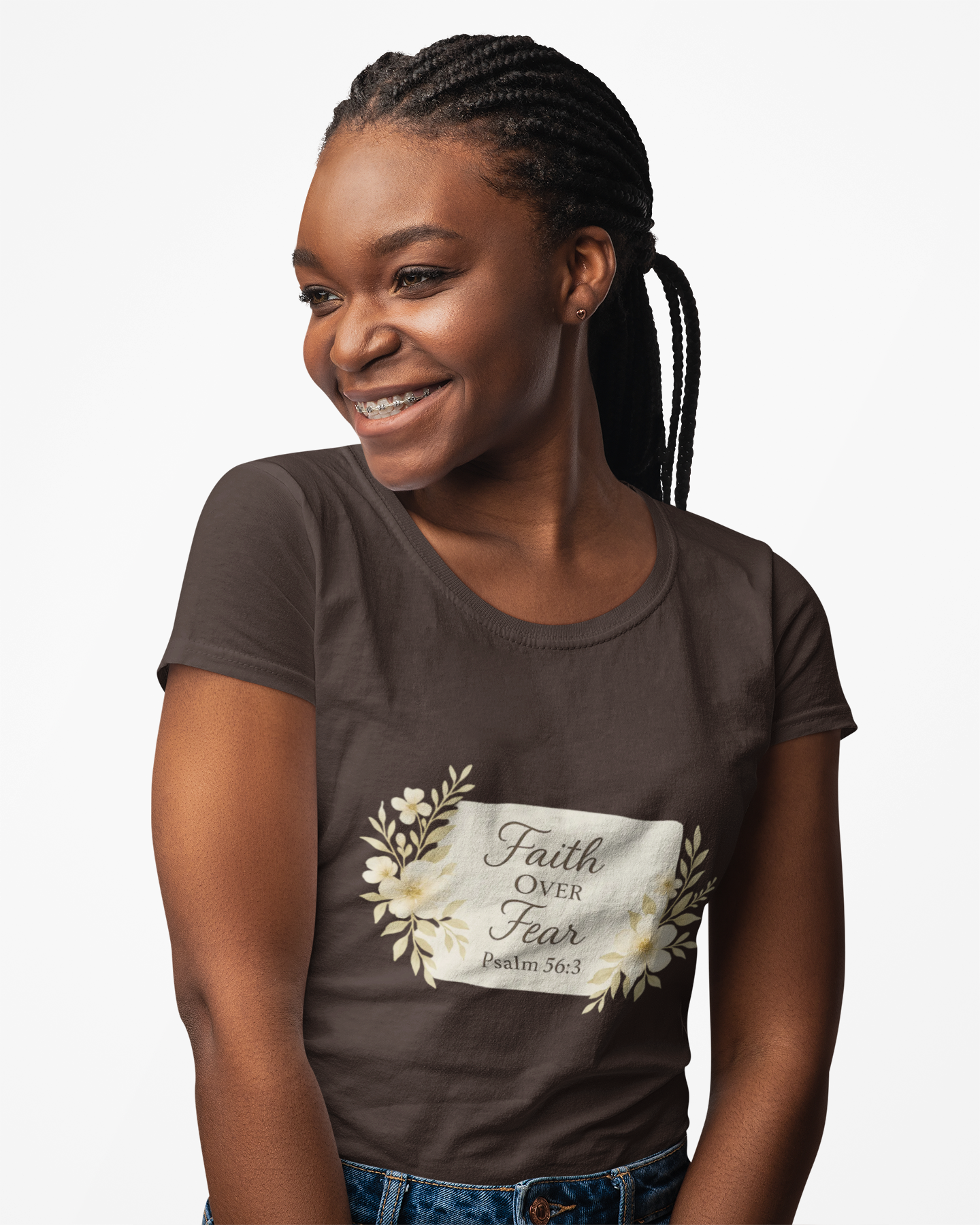 As Christian we know that God has not given us a spirit of fear but of power, love and a sound mind. Let this T-shirt be a reminder to let us remember the Lord is with us, no matter what we fear. Faith without Fear.
